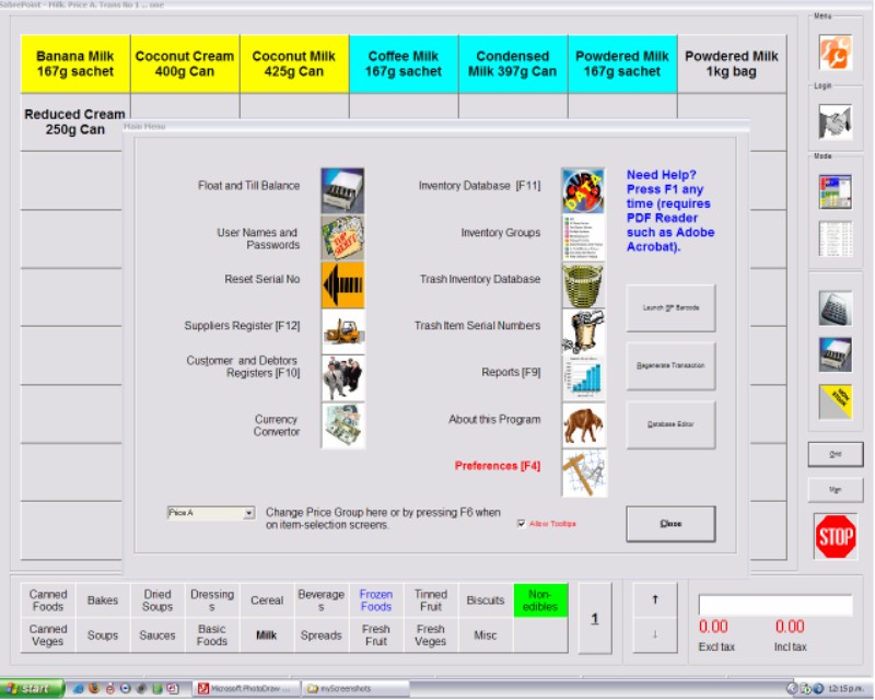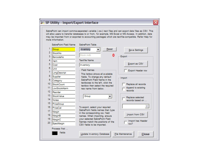 SabrePoint POS - Import/Export facility |