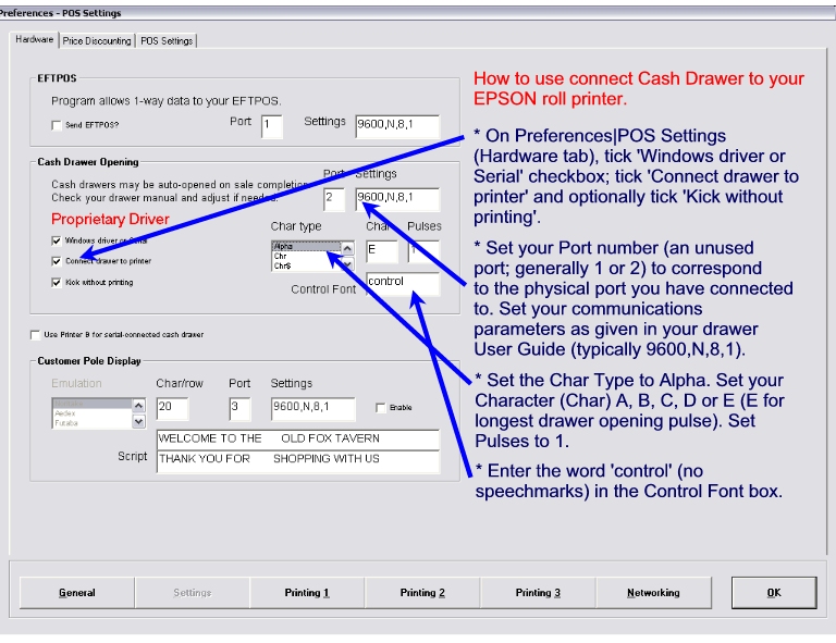 Generic/Text Only drivers - this allows the kicking of cash drawers