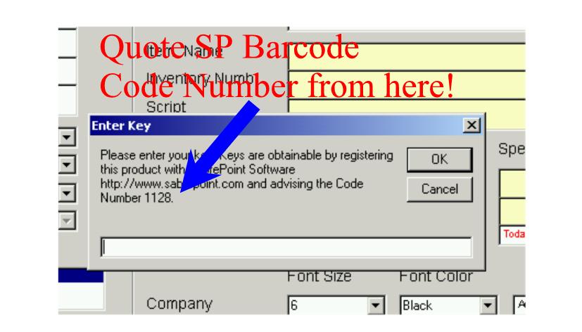 to/have installed SabrePoint POS, as SP Barcode (Trial